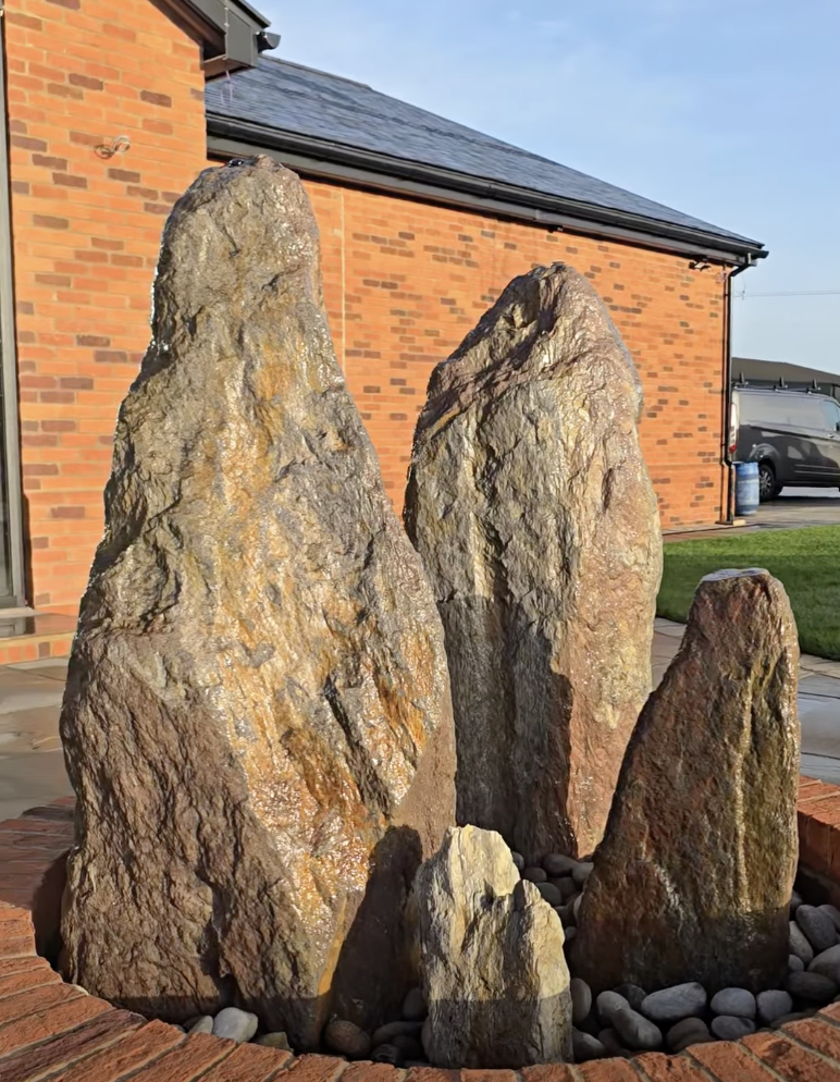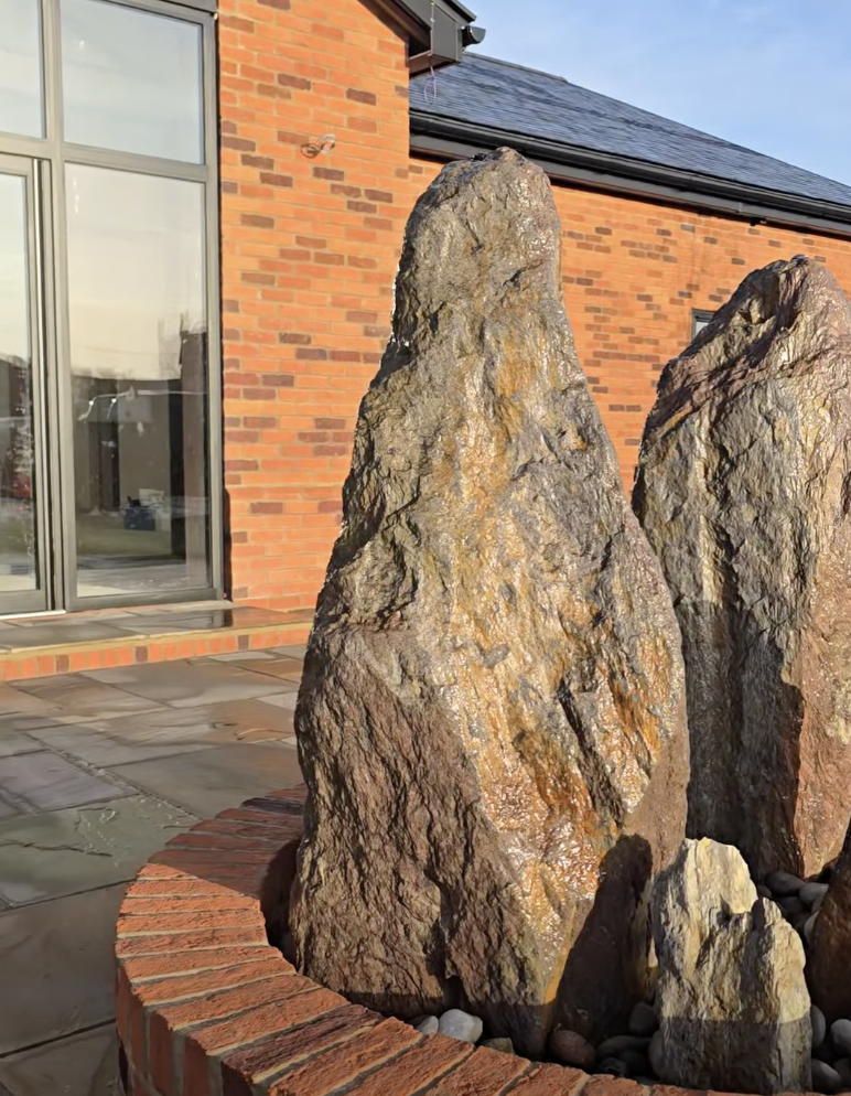 A striking water feature installed using multi-coloured stones, designed to serve as the focal point at the entrance of a new office.